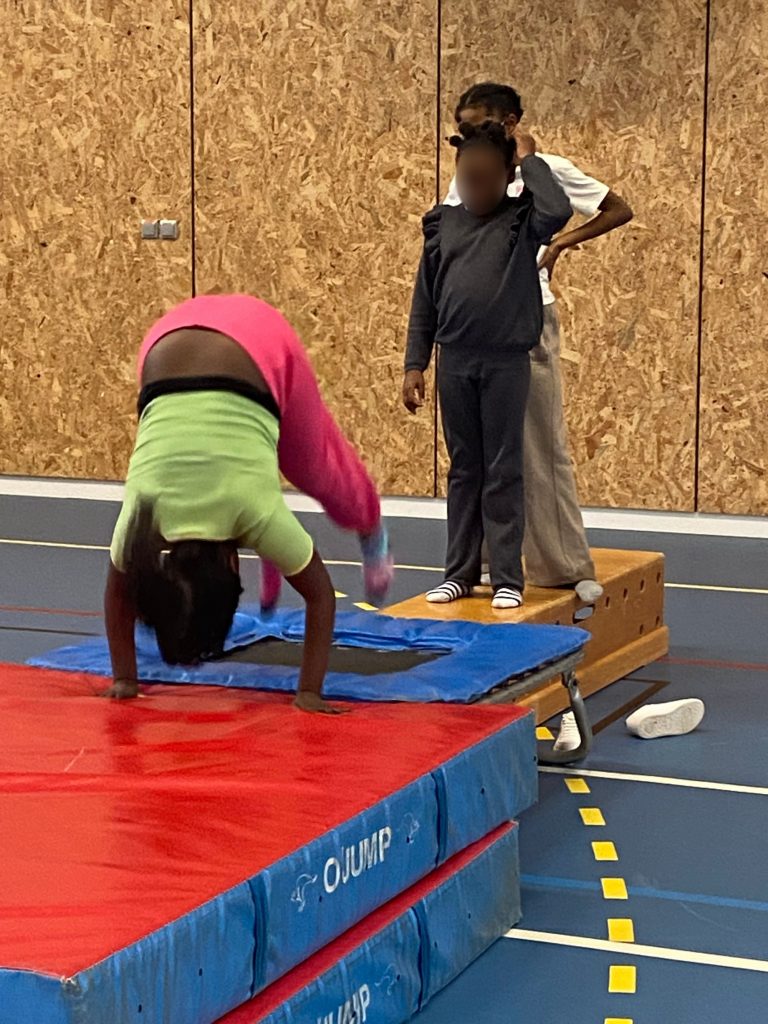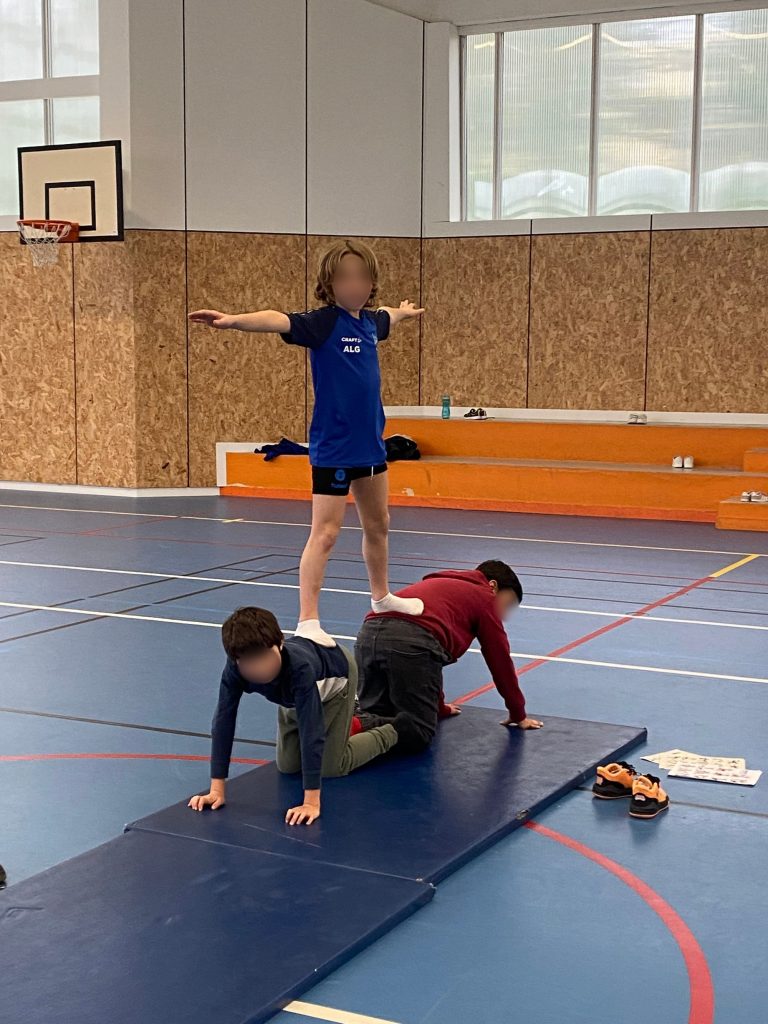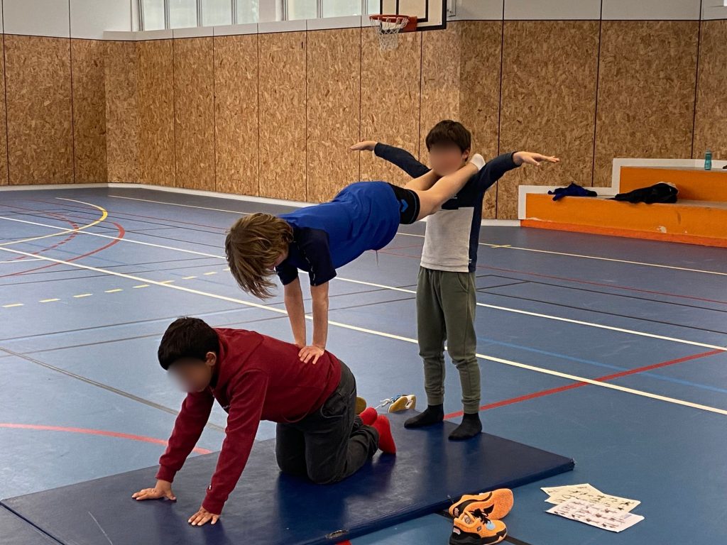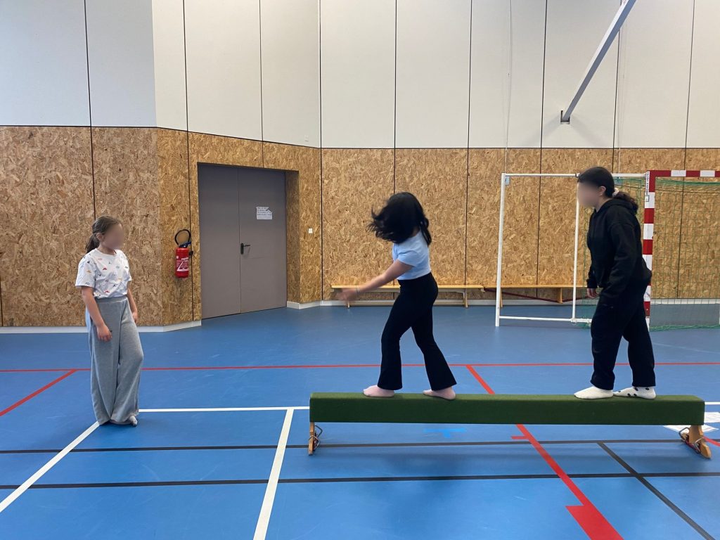 En période 3, Eric, animateur sportif de la ville de Rennes, a animé un cycle de gym pour les 3 classes d’élémentaire. Les élèves ont pratiqué des agrès, la gym acrobatique et des roulades.