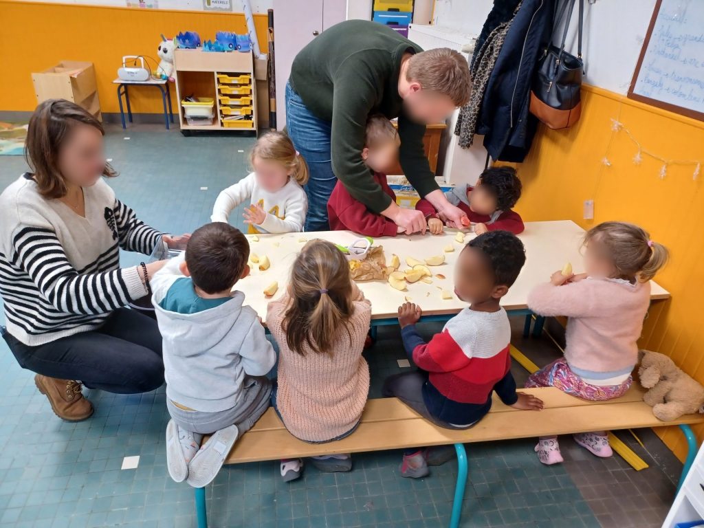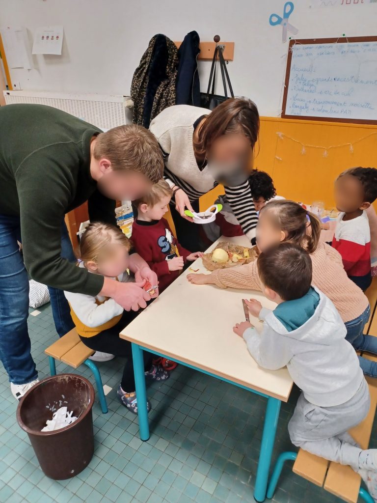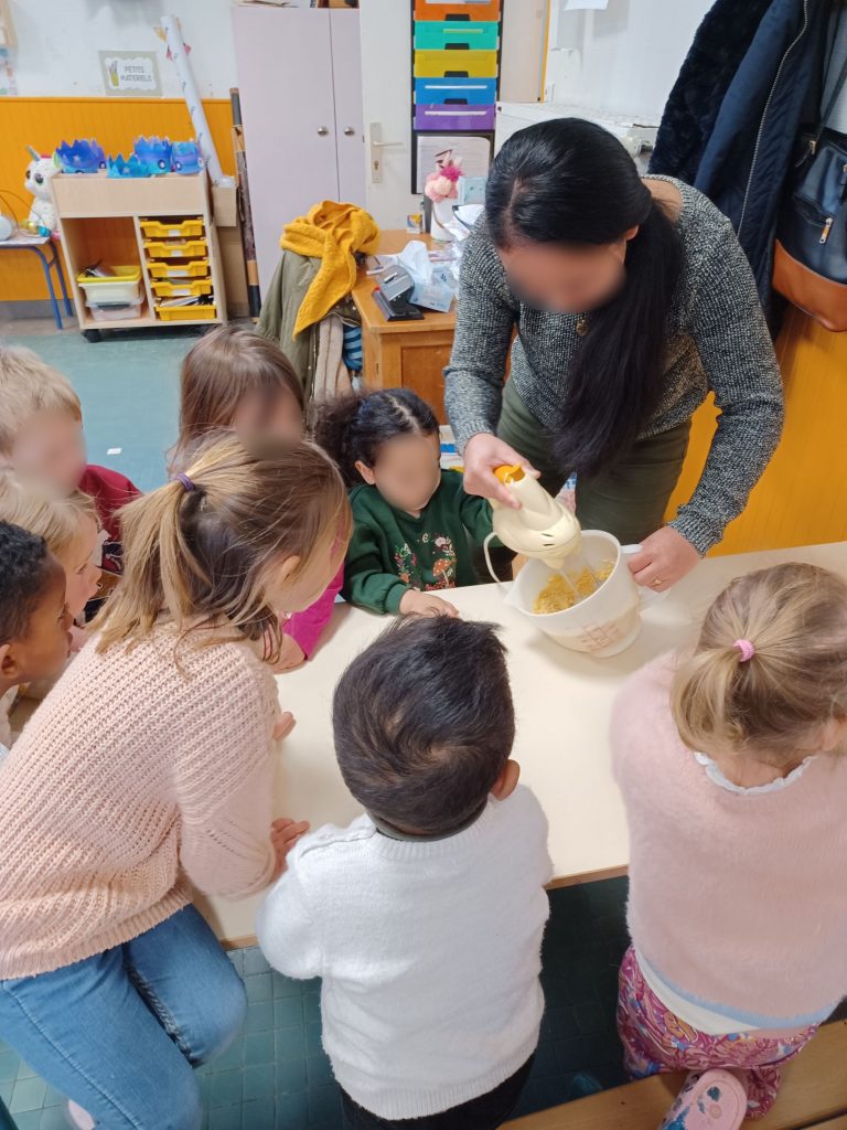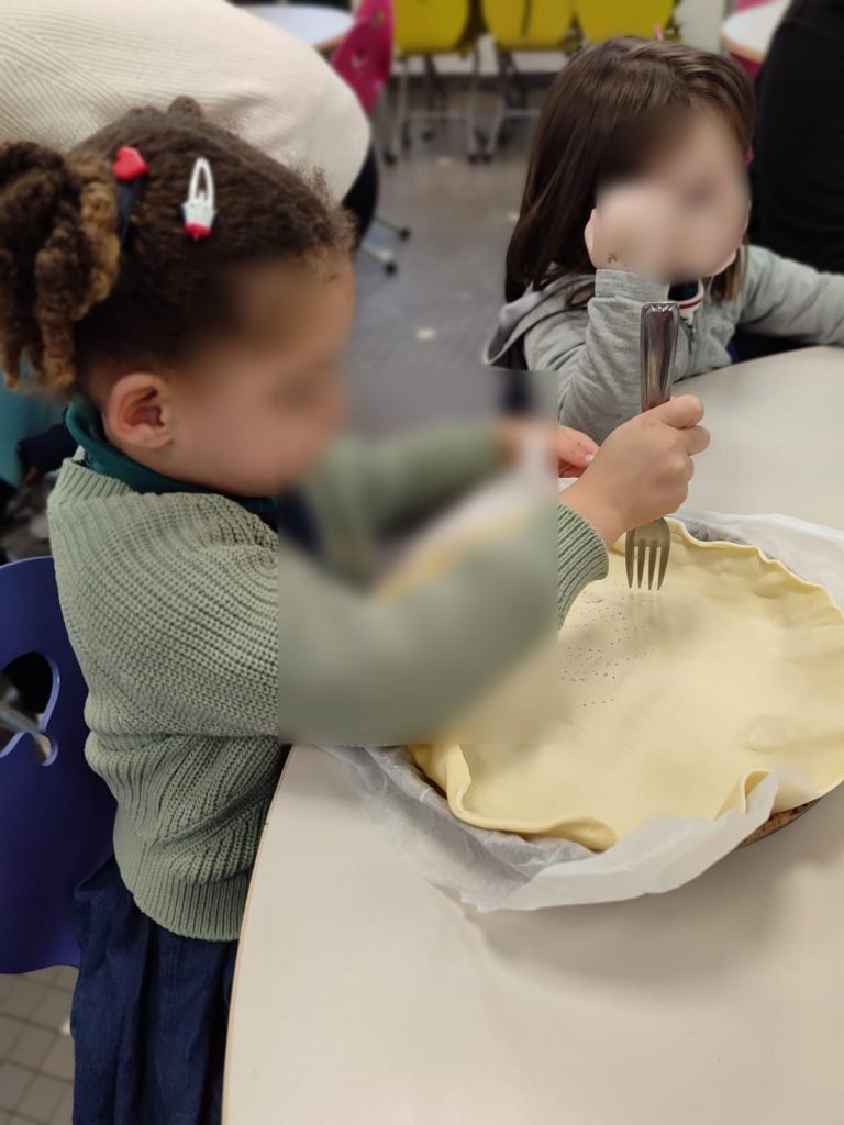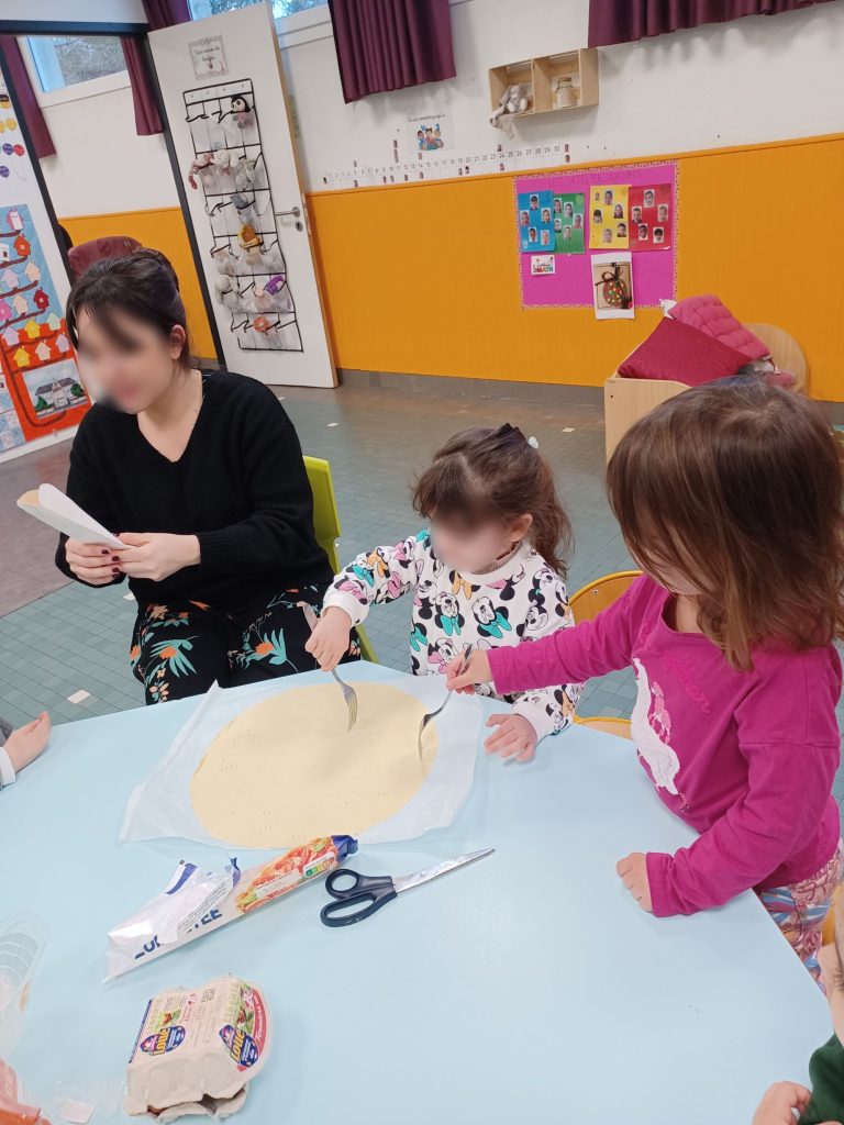 De la PS au CM2, tous les élèves ont pâtissé pour confectionner de délicieuses galettes des rois à partager avec les familles à la sortie de l’école!