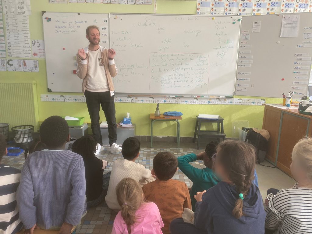 Elvi, slameur rennais, est venu présenter le slam aux élèves. Il a animé un atelier d’écriture avec les 3 classes d’élémentaire et expliqué une démarche de création poétique. Il a suscité beaucoup de motivation chez nos élèves qui vont maintenant travailler sur leur propre texte en classe. Ils vont également être accompagnés par Isabelle DELAUCHE du conservatoire, pour apprendre à déclamer un texte de slam. Ce projet prend place dans notre projet artistique et civique de l’année autour de la citoyenneté européenne.
