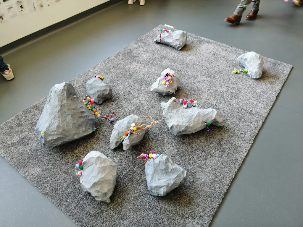 L’artiste a d’abord présenté quelques – unes de ses productions, notamment ses « drôles de petites bêtes » afin de mettre nos élèves en appétit.