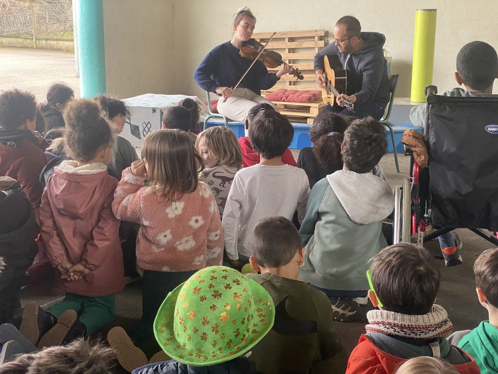 Habillés de vert, les élèves de l’école ont fêté la St Patrick au son du violon et de la guitare. Merci à Marilys et Pierre pour ce petit concert offert aux enfants.